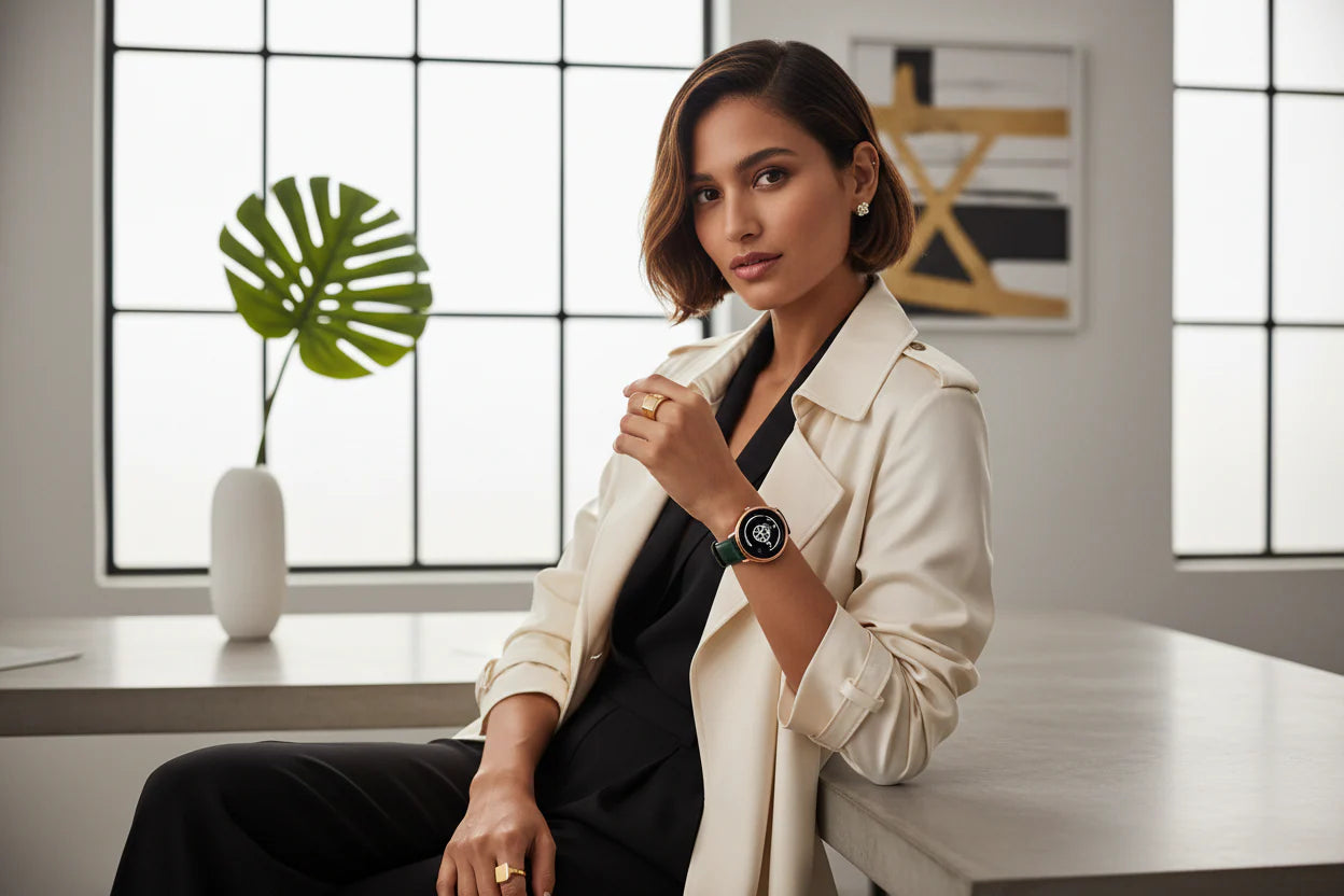 Premium Gold Finish Bluetooth Calling Smartwatch,HD Display Gold Smartwatch with Health Tracking & Metal StrapAction